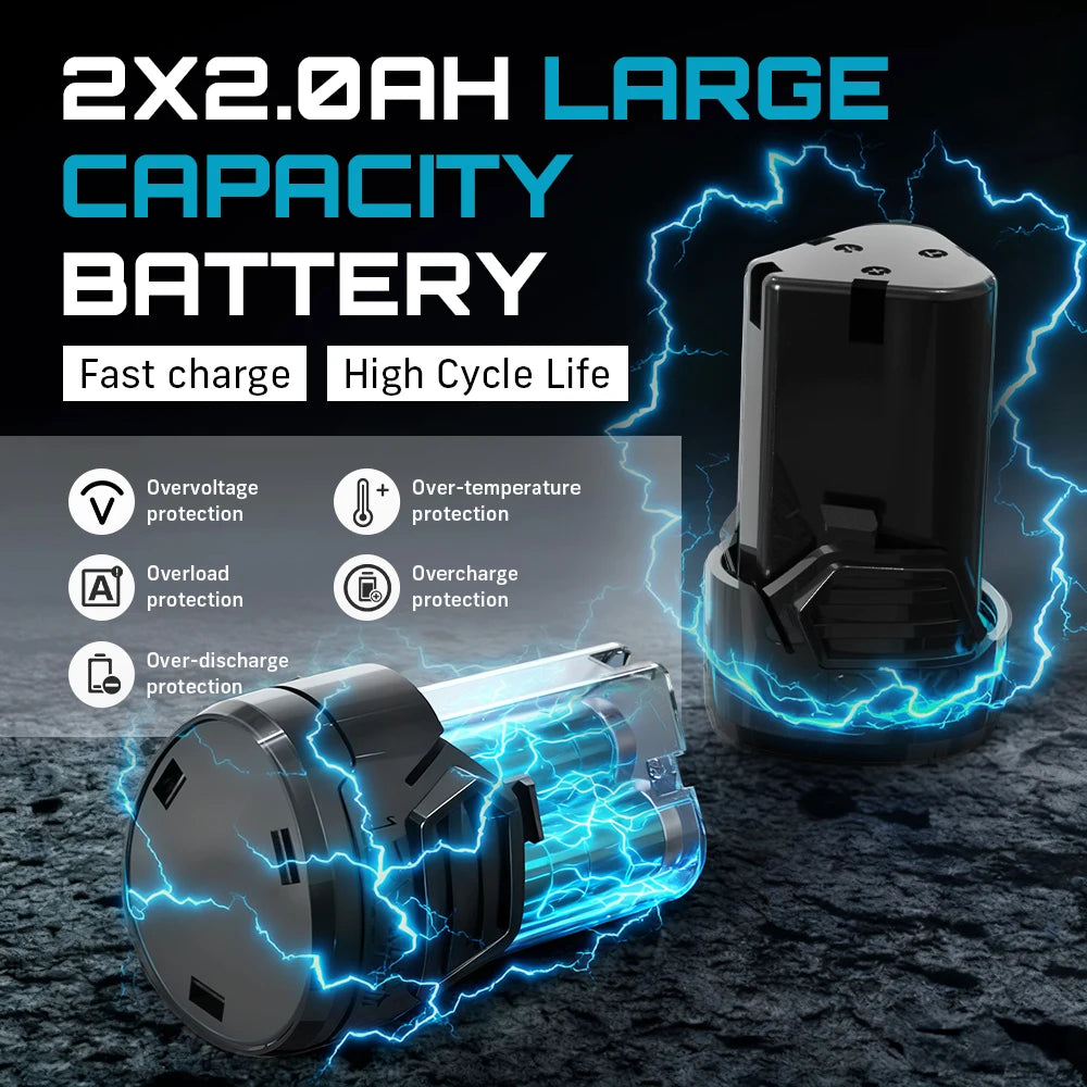 2 batteries longue durée : 4h d’autonomie cumulée pour travailler sans interruption.